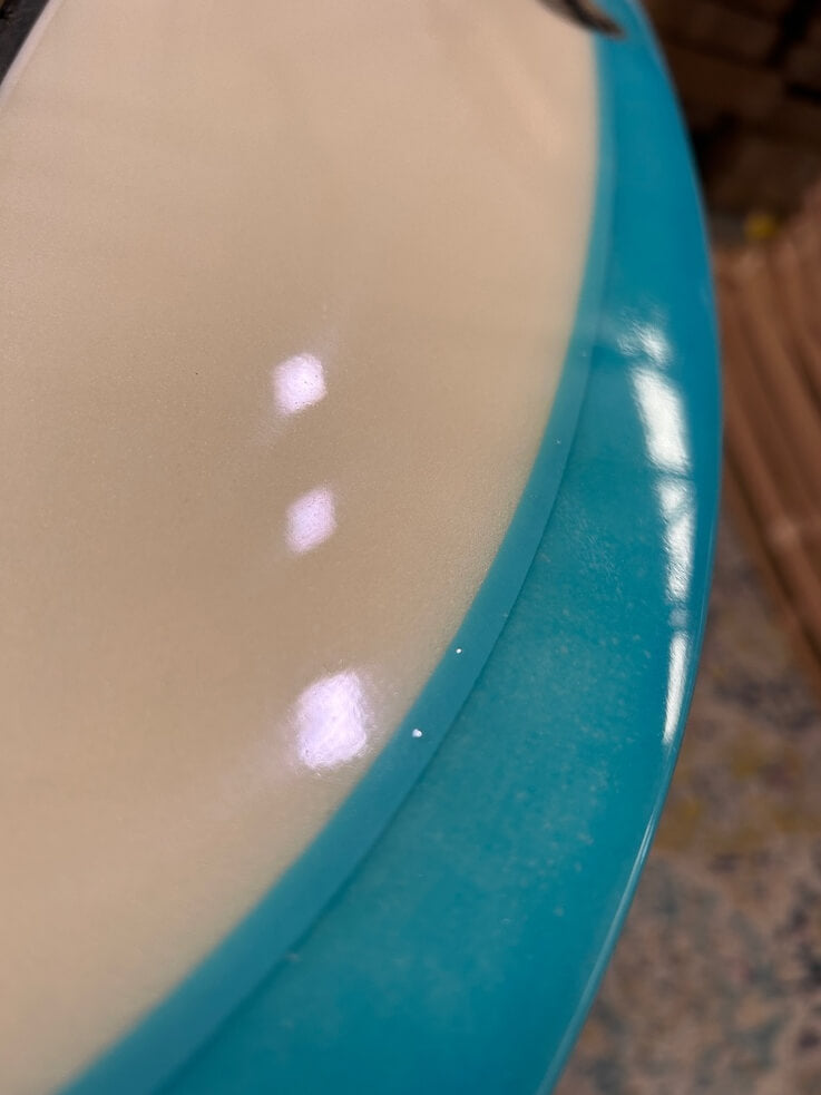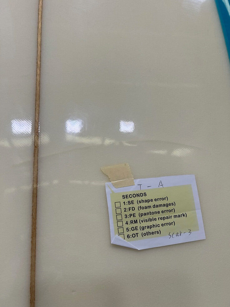 This 8'1 new Huevo PU has some scaring in the glassing on the bottom in the blank. There is a few colour imperfections on the blue deck and a few air bubbles in the polish top coat on the bottom along the pin line. The board is brand new. Theis imperfections will not effect the board and are only cosmetic.8'1" x 22 1/8"x 2 7/8" 59.1 Litres.